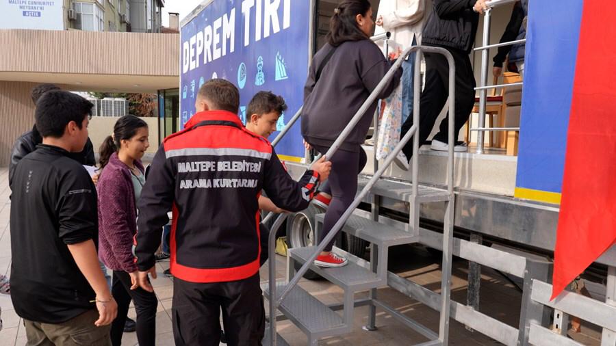 12 Kasım’da, saat 11.00-19.00 saatleri arasında, Maltepe Cumhuriyet Meydanı’nda vatandaşın hizmetine sunulan eğitim tırında öncelikle 10 dakika süren, deprem öncesi, sırası ve sonrasında yaşanması olası senaryolar ve yapılması gerekenler hakkında kısa bir bilgilendirme yapıldı...