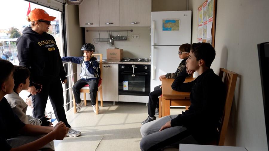 Boğaziçi Üniversitesi, Kandilli Rasathanesi Deprem Araştırma Enstitüsü ile Maltepe Belediyesi Afet İşleri Müdürlüğü işbirliğinde kurumsal sosyal sorumluluk anlayışı ile depremden korunma kültürünün ve bilincinin oluşturulmasına katkıda bulunmak amacıyla yapılan çalışmada 6 metreye 2.40 metrelik alana yerleştirilen oturma odası ve mutfaktan oluşan simülasyon odasında yapay deprem oluşturularak vatandaşlara deprem öncesi hazırlık ve deprem sırası doğru davranış şekillerini içeren bilgilendirme yapıldı...