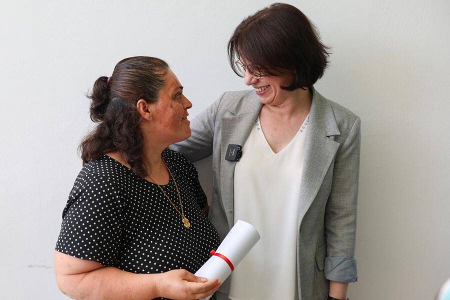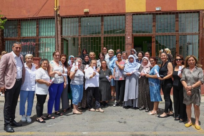 Başkan Esin Köymen, okuma yazma kursuna katılan kadınlara sertifikalarını takdim ederek hatıra fotoğrafı çektirdi...