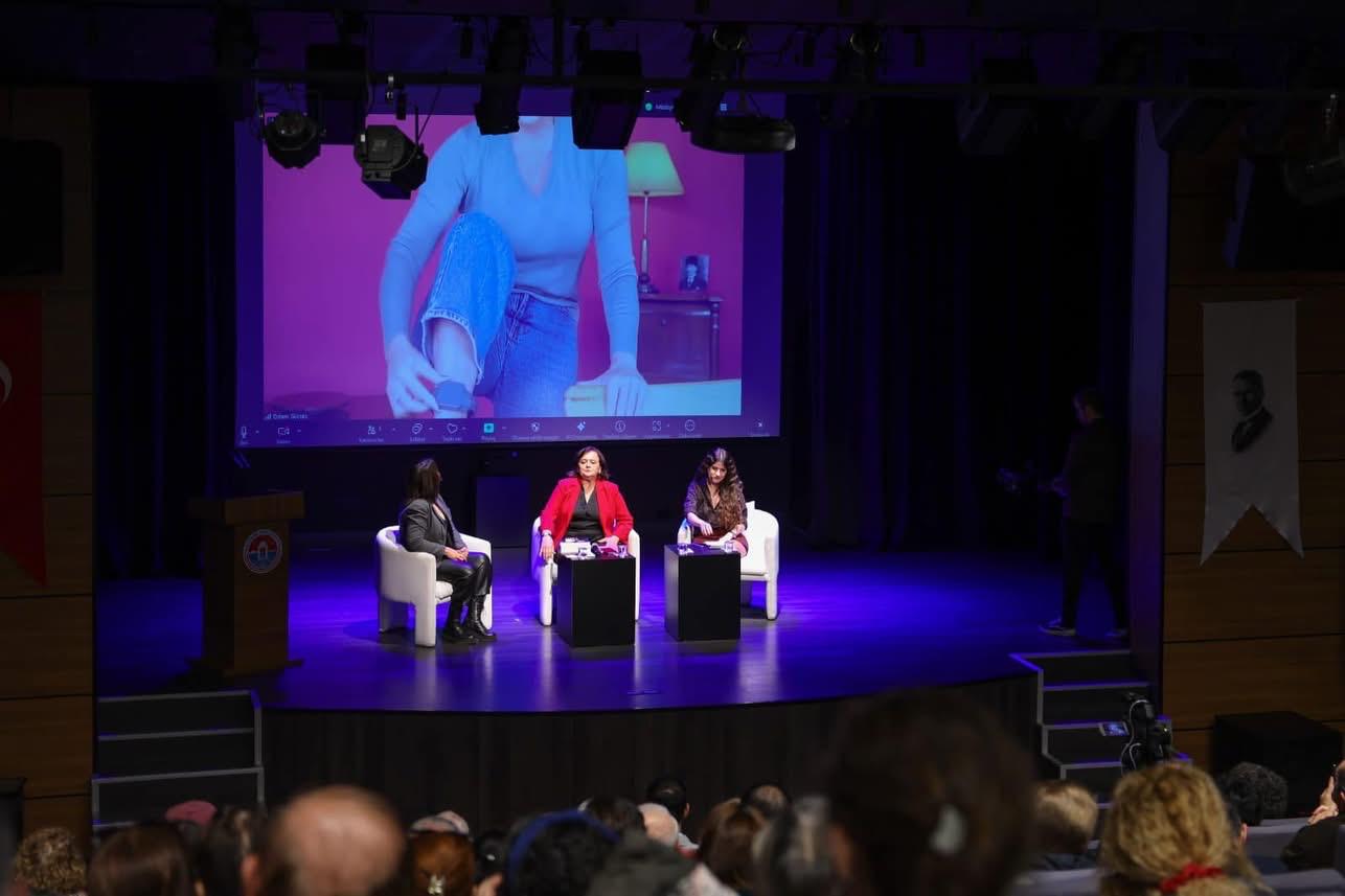 Söyleşi sonrası sahneye çıkarak katılımcılara çiçek veren ev sahibi Belediye Başkanı Mimar Esin Köymen, “Ben öncelikle bu dört cesaretli kadına teşekkür ediyorum…