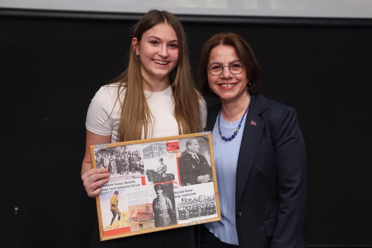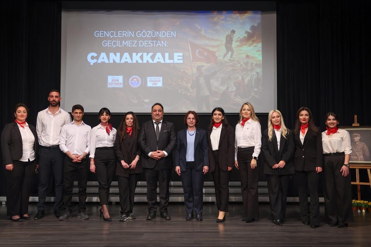 Çanakkale Zaferi’ni insanlık tarihinin en güçlü dayanışma ve fedakârlık alanı olarak görmek gerektiğine işaret eden Başkan Esin Köymen, “Tarih ancak yeni kuşakların onu anlaması ve sahiplenmesiyle canlı kalır. Siz gençler yalnızca geçmişi öğrenen değil o mirası geleceğe taşıyan kuşaklarsınız. Sizlerin tarihine, değerlerine, cumhuriyetine sahip çıkan bireyler olarak yetişmesi bizim en büyük sorumluluğumuzdur.” diye konuştu.