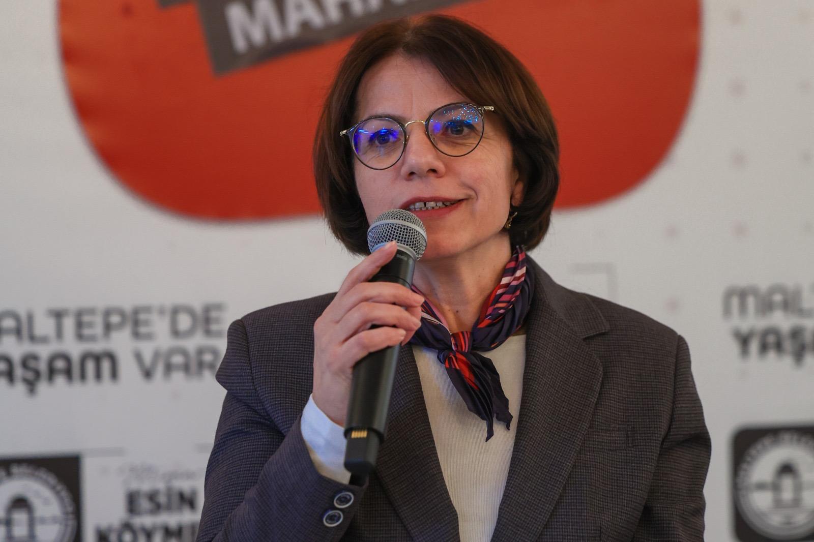 Maltepe Belediye Başkanı Mimar Esin Köymen, muhtara sorunları aktardığı için teşekkür ederek başladığı konuşmasında, “100 bini aşan nüfusuyla Maltepe’nin en kalabalık mahallesindeyiz…