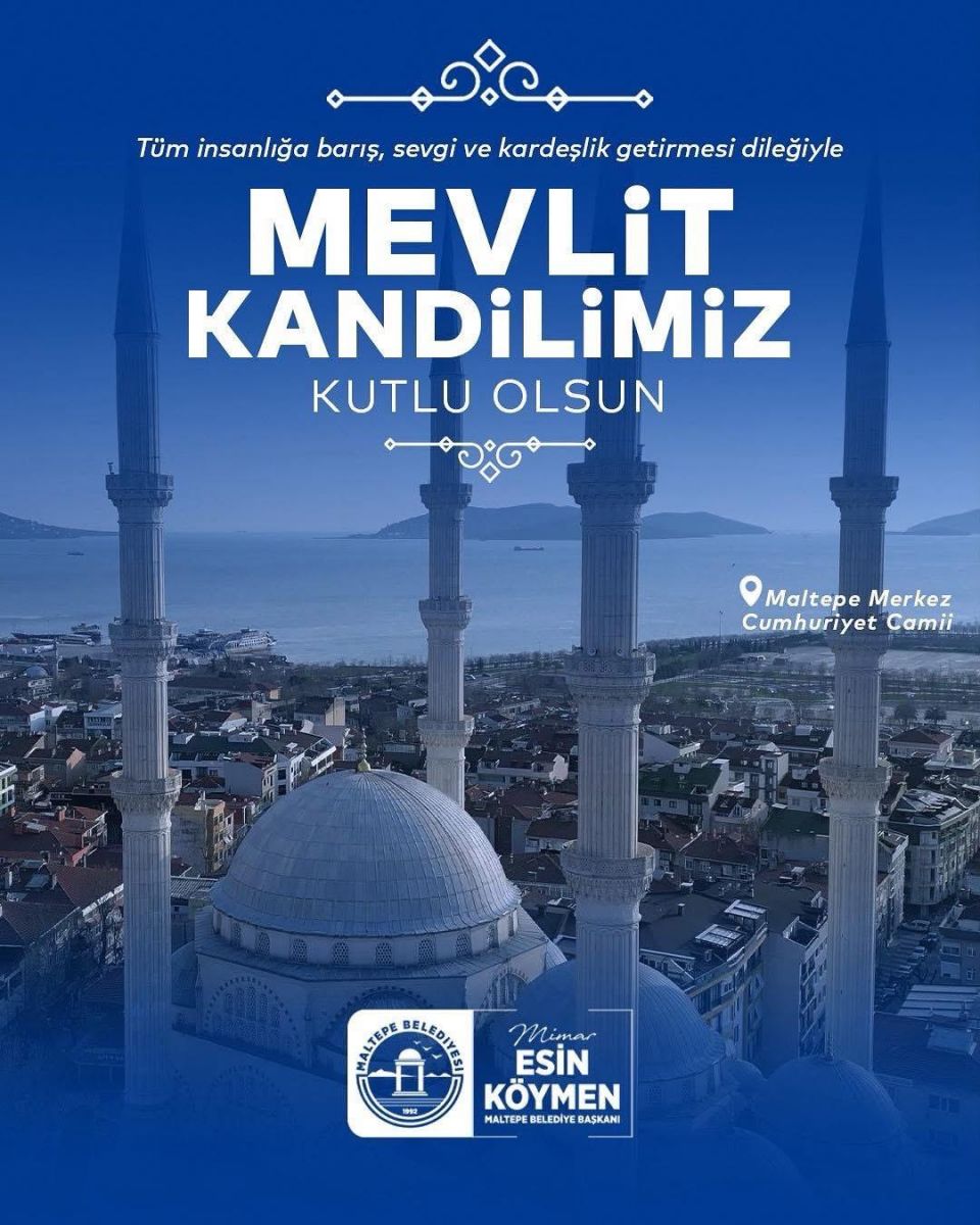 Maltepe Belediye Başkanı Mimar Esin Köymen de kandil dolayısıyla yayımladığı mesajda, “Tüm insanlığa barış, sevgi ve kardeşlik getirmesi dileğiyle Mevlit Kandilimiz kutlu olsun.” ifadelerini kullandı