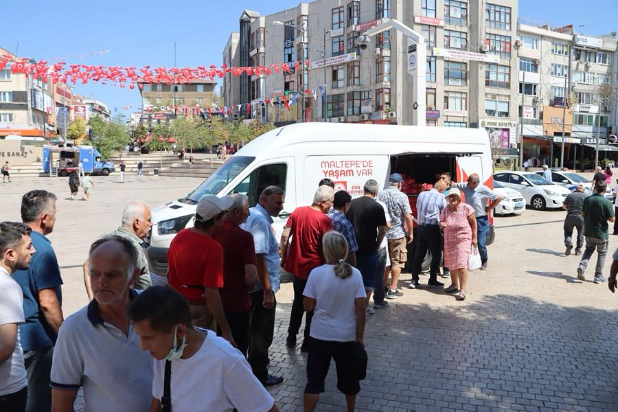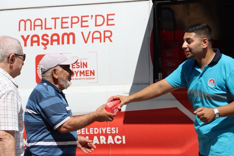 Belediye Sosyal Destek Hizmetleri Müdürlüğü ekipleri, Maltepe Merkez Cami önünde vatandaşlara ikramda bulundu.