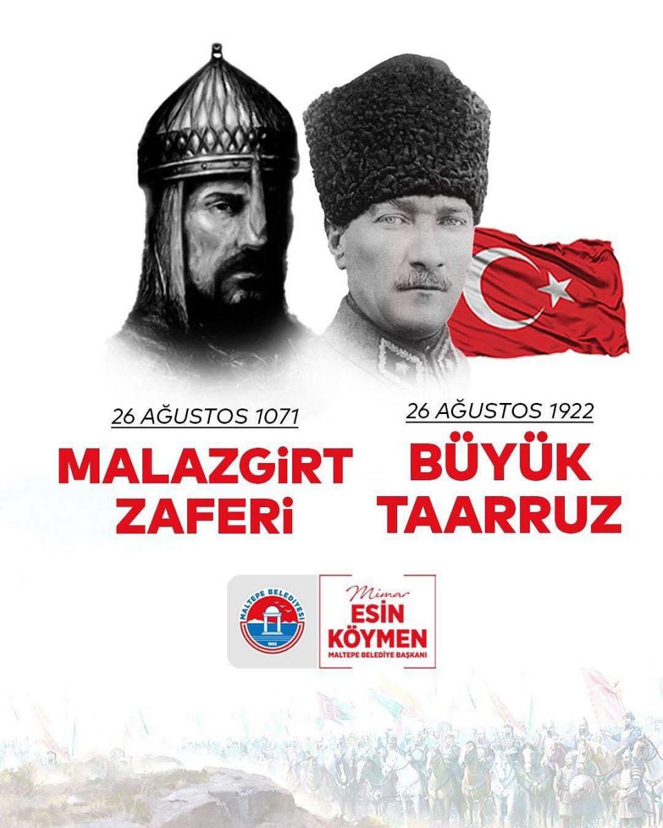 Başkan Esin Köymen, mesajında şu ifadelere yer verdi: “Anadolu’nun kapılarını açan Malazgirt Zaferi’nden, vatanımızı özgürlüğe kavuşturan Büyük Taarruz’a uzanan tarihimiz, milletimizin azim ve kararlılığının göstergesidir.