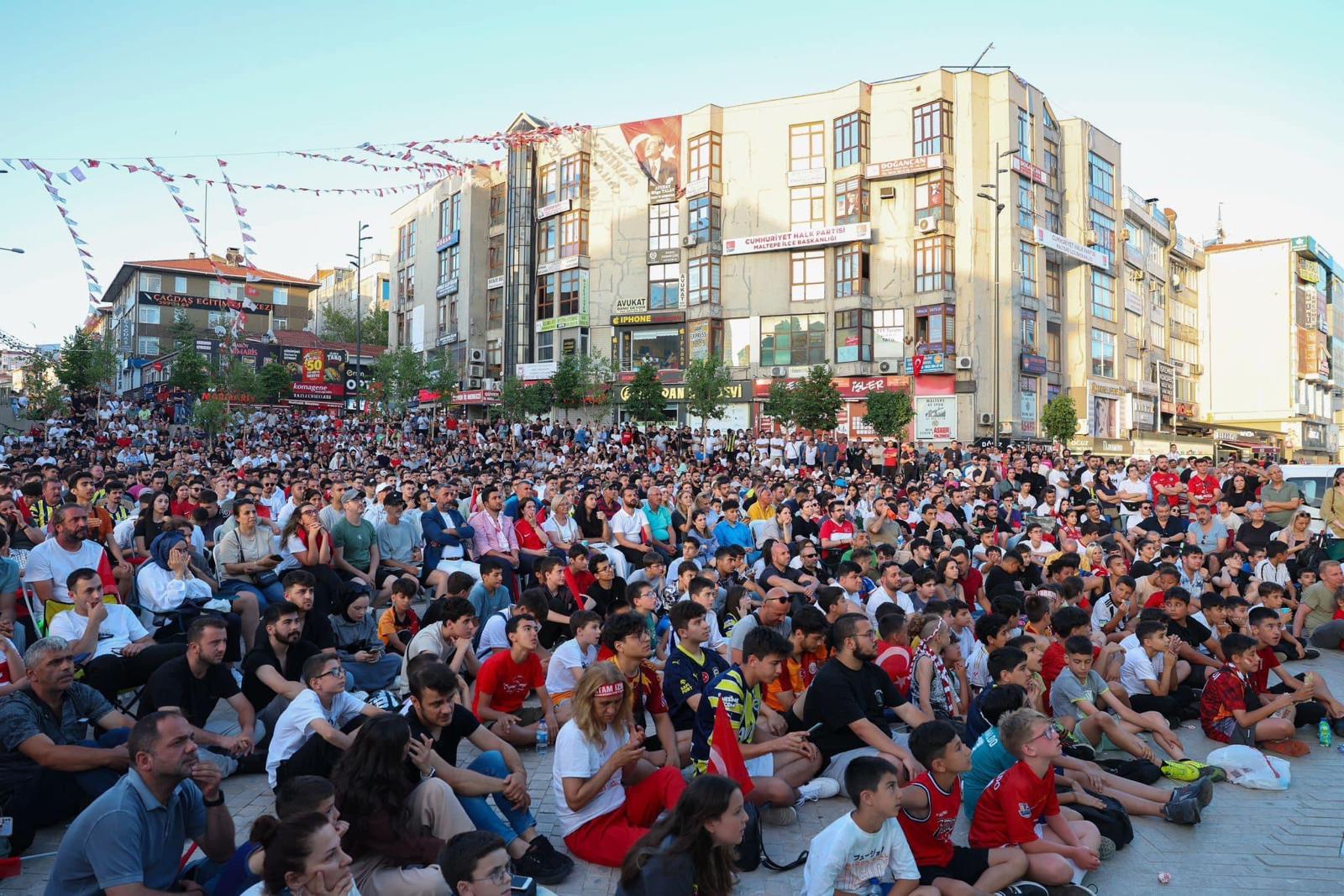 Alanı dolduran vatandaşlar, ellerindeki Türk bayraklarıyla Milli Takım’a alkış ve tezahüratlarla destek vererek Cumhuriyet Meydanı’nı adeta bir stadyum atmosferine çevirdi...