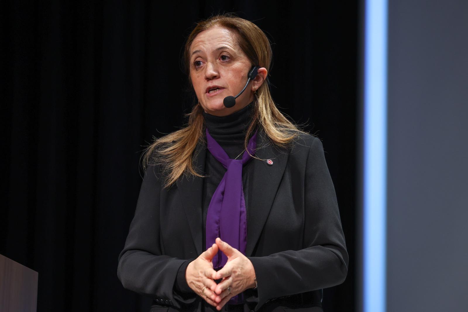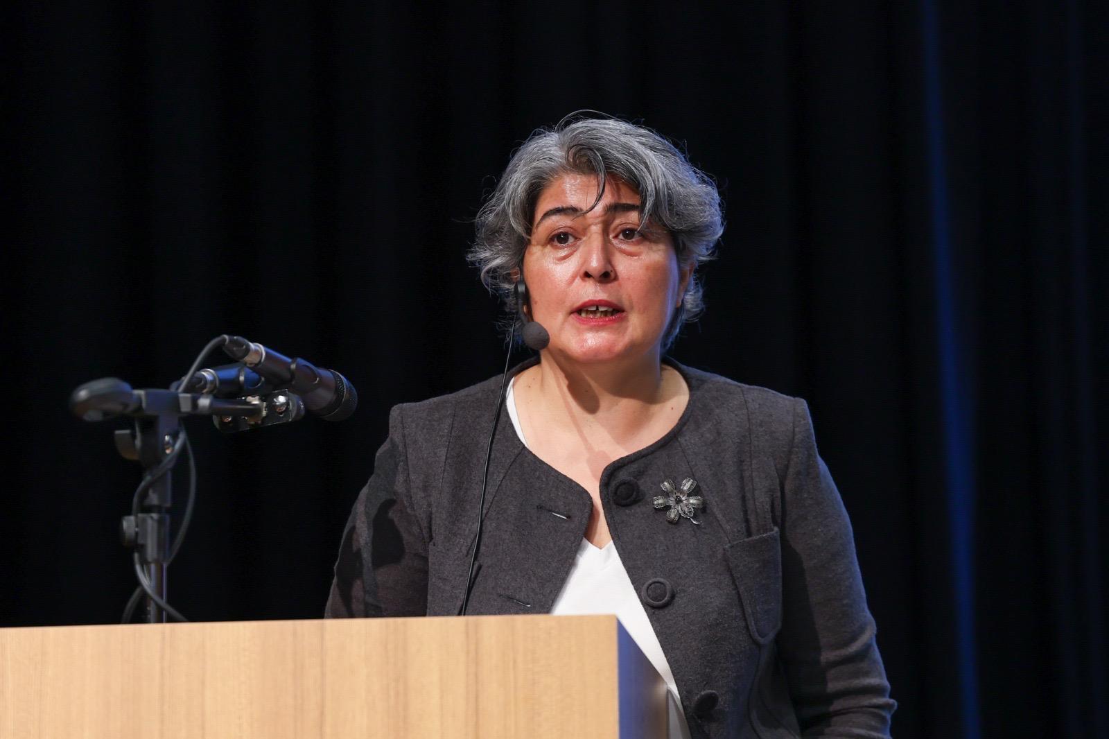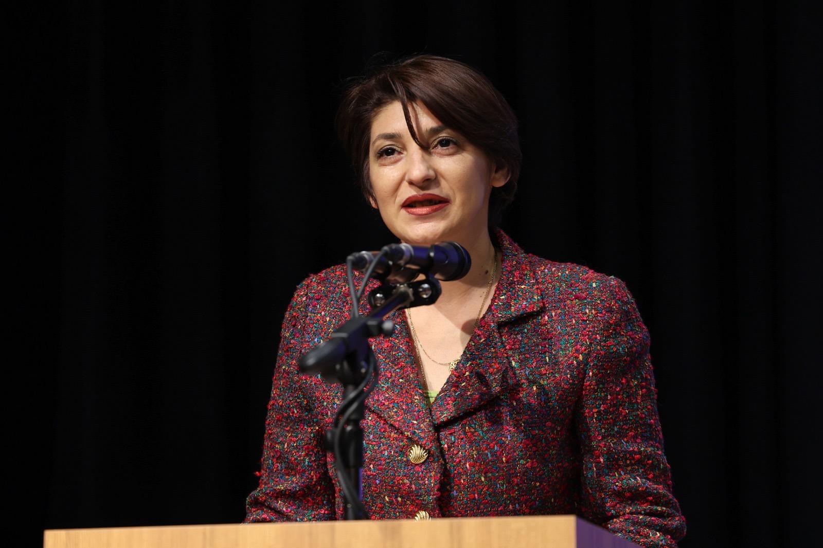 Kadınların iş hayatında büyük mücadeleler verdiklerini, eşit işe eşit ücretin hala bir ideal olarak önlerinde durduğunu ve kadınların çalışma hayatında cam tavan denilen görünmez engellerle karşı karşıya olduklarını belirterek konuşmasını sürdüren Esin Köymen, bu alandaki istatistiki verileri paylaşarak şunları söyledi: “Türkiye’de kadın istihdam oranı sadece yüzde 30 civarında…