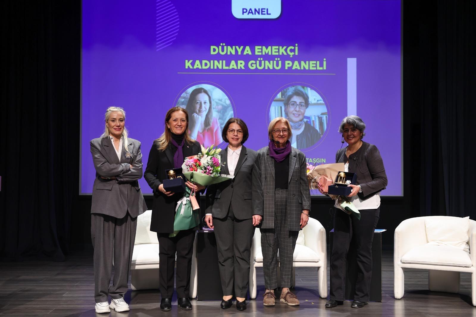 Panel öncesinde kadınlar gününe özel mini belgesel gösterildi. DİSK Genel Başkanı Arzu Çerkezoğlu’nun “Ev İçinde Kadın Yoksulluğu” ve Maltepe Üniversitesi Kadın Araştırmaları Uygulama ve Araştırma Merkezi (MÜKÇAM) Müdürü ve Maltepe Üniversitesi, Toplum Bilimleri Fakültesi, Sosyal Hizmet Bölümü Program Direktörü Doç. Dr. Neşe Şahin Taşgın’ın “Kadınların Çalışma Yaşamında Karşılaştıkları Engeller ve Ayrımcılık Pratikleri” konulu sunum yaptıkları panele kadınlar yoğun ilgi gösterdi…