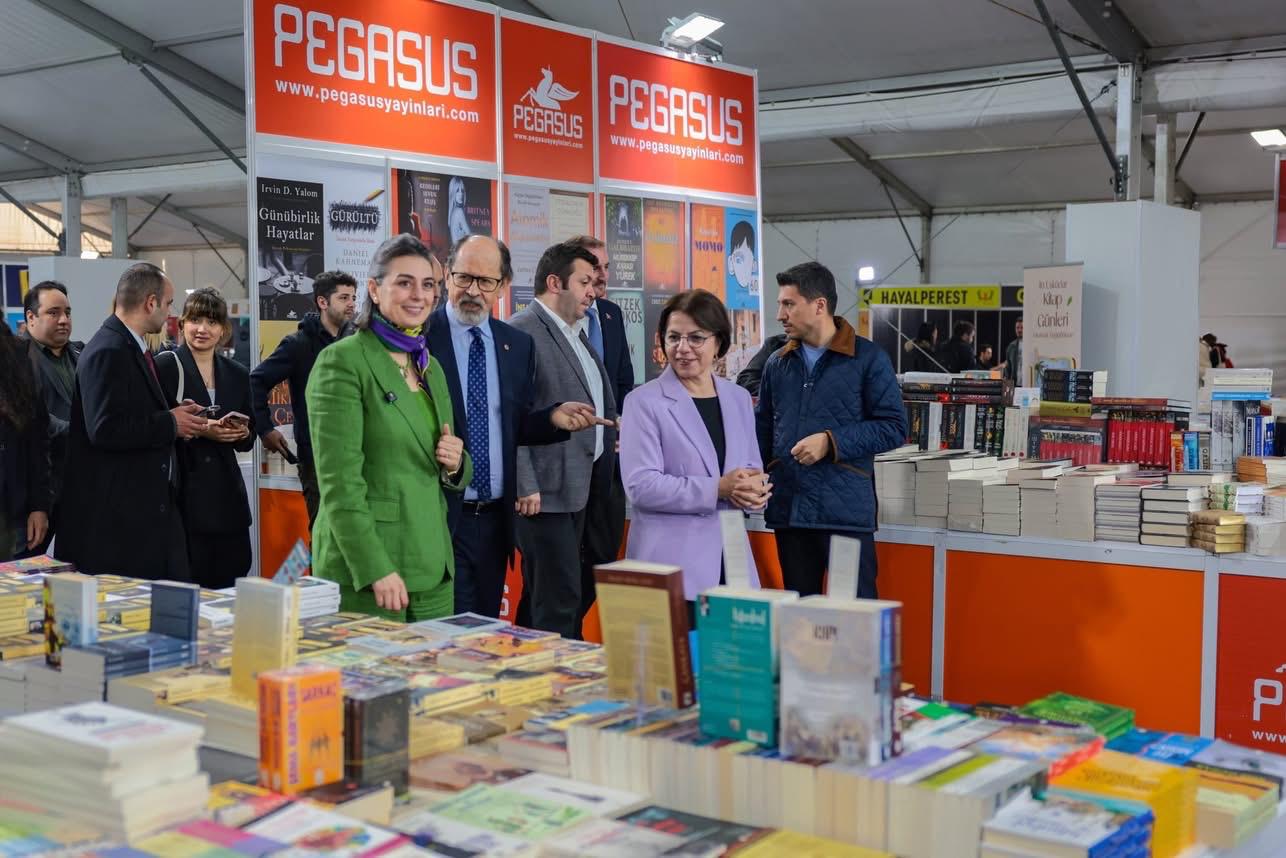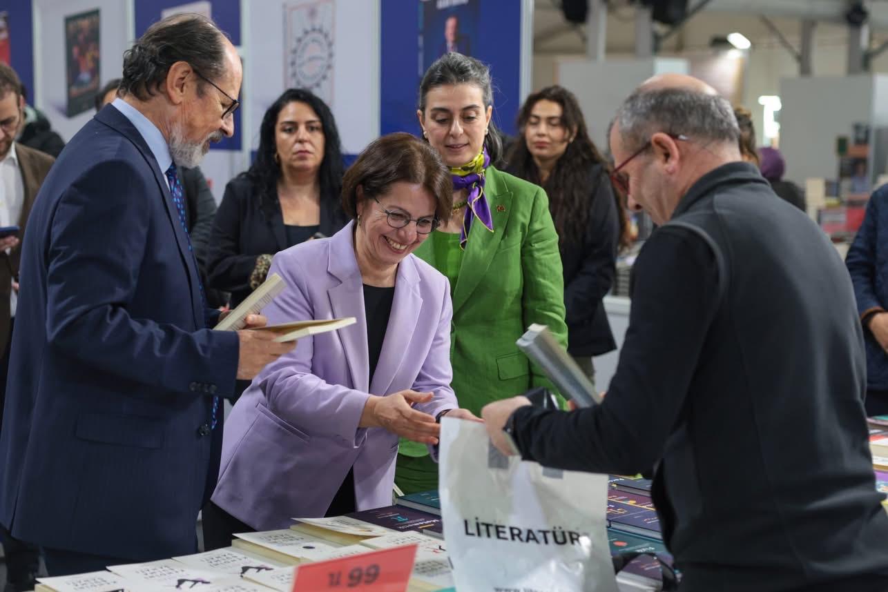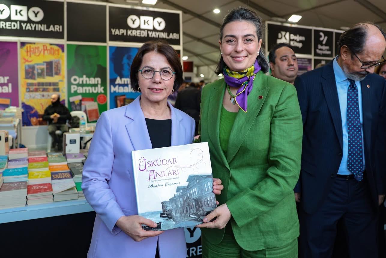 Soru-cevap bölümünün ardından sona eren söyleşi sonrası Başkan Esin Köymen, Üsküdar Belediye Başkanı Sinem Dedetaş ile birlikte kitap fuarını gezdi ve çeşitli kitaplar aldı… İkili birbirine kitap hediye etmeyi de ihmal etmedi.
