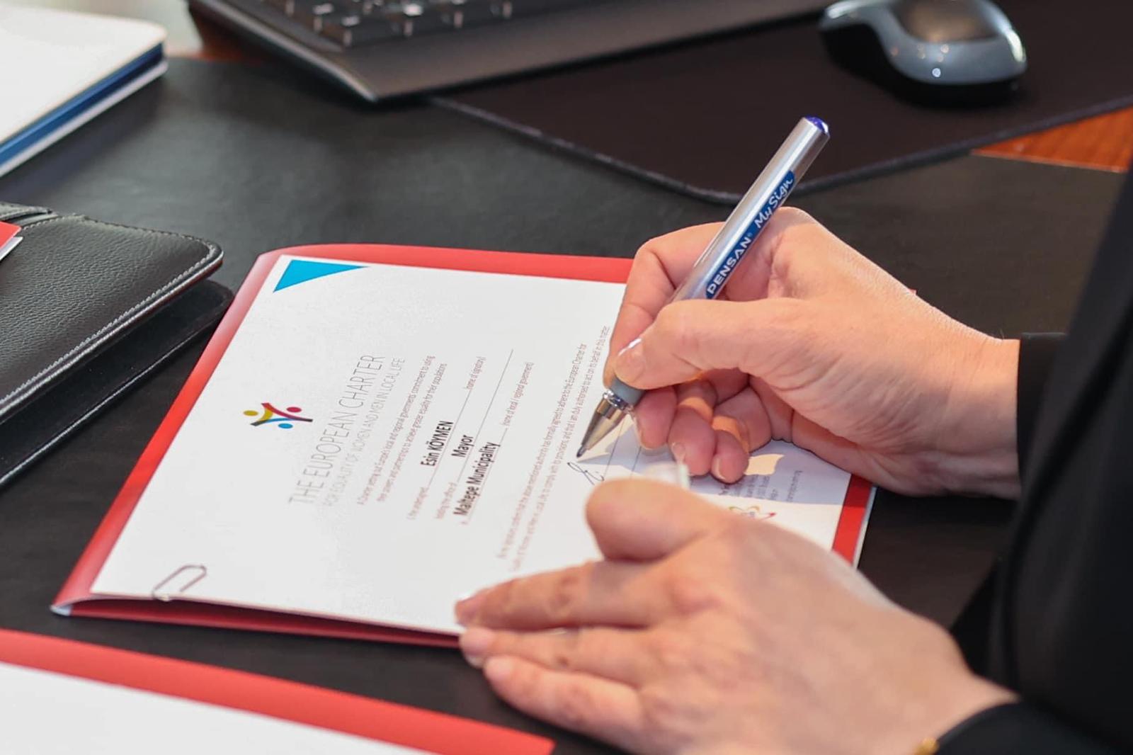 Başkanlık makamında düzenlenen imza töreni sonrası konuşan Maltepe Belediye Başkanı Mimar Esin Köymen, “CEMR, Avrupa Belediyeler ve Bölgeler Konseyi’nin Avrupa Yerel Yaşamda Kadın-Erkek Eşitliği Şart Protokolü’nü imzaladım...