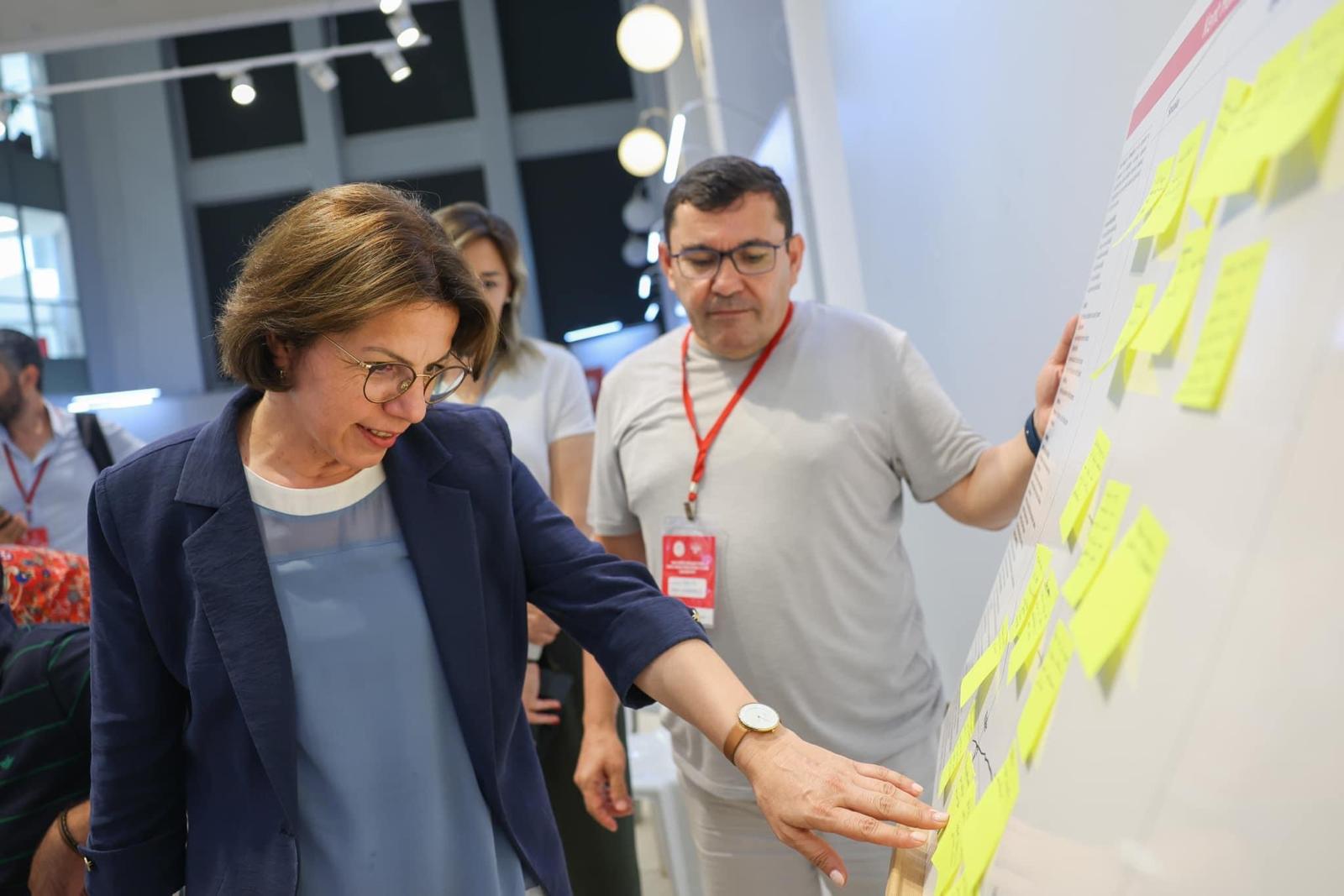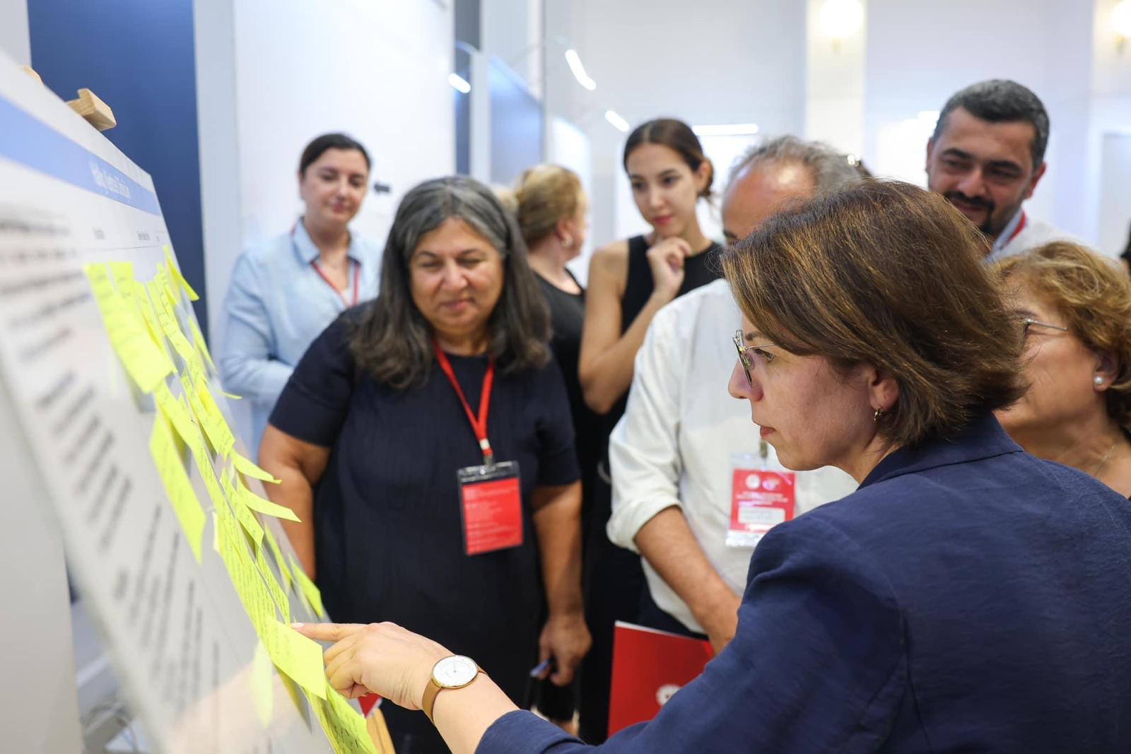 Başkan Esin Köymen de masaları tek tek gezerek alınan notları inceledi ve katılımcıların soru, görüş ve önerilerini dinleyerek not aldı...