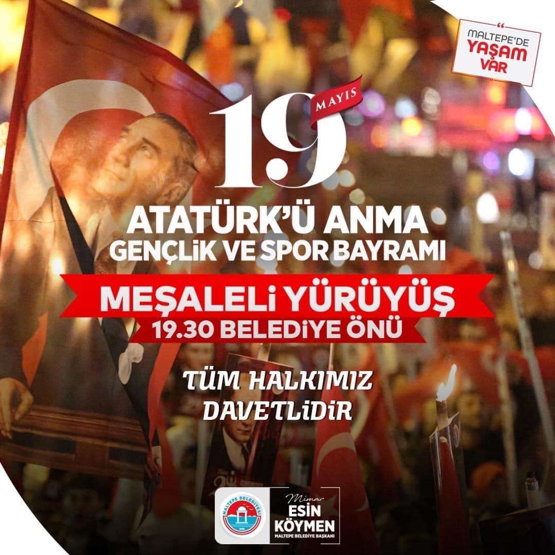 19 Mayıs Atatürk’ü Anma Gençlik ve Spor Bayramı kutlamaları; 19 Mayıs Salı günü saat 10.00 da İdealtepe Sahil Mendirek Alanı’nda yapılacak olan ‘1919 Metre Yüzme Yarışı’ ve 19 Mayıs Salı günü saat 19.30 da Maltepe Belediyesi önünden Maltepe Sahil Etkinlik Alanı’na kadar devam edecek olan ‘Meşaleli Yürüyüş’ ile son bulacak...