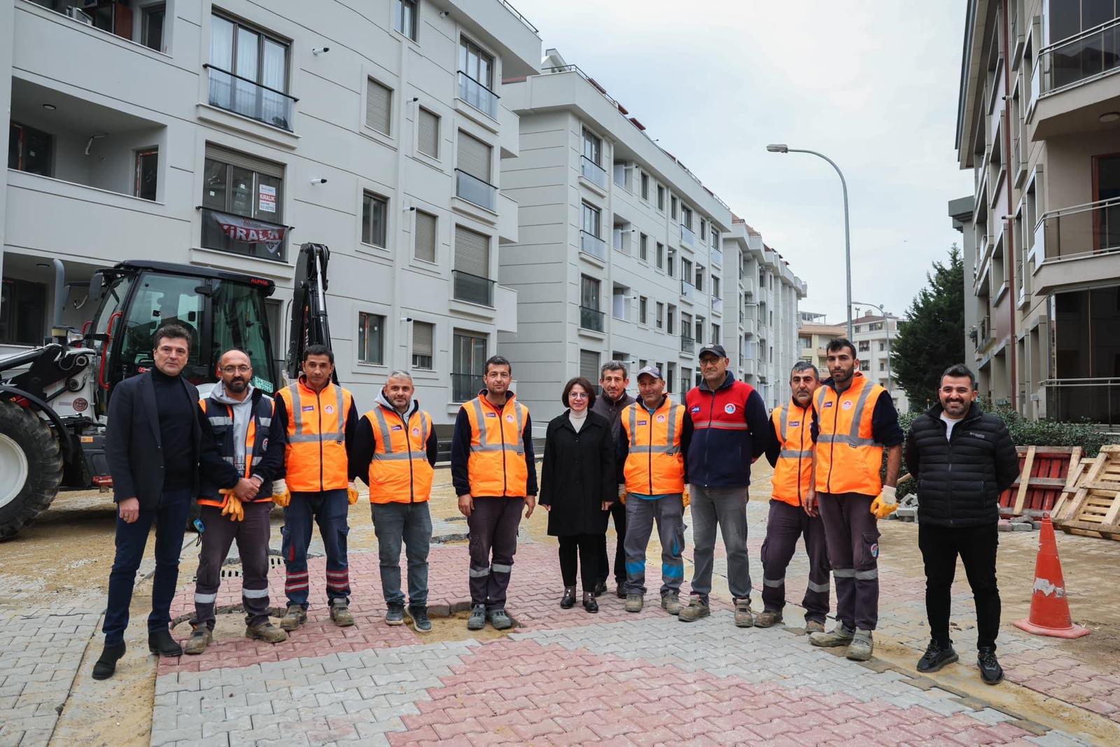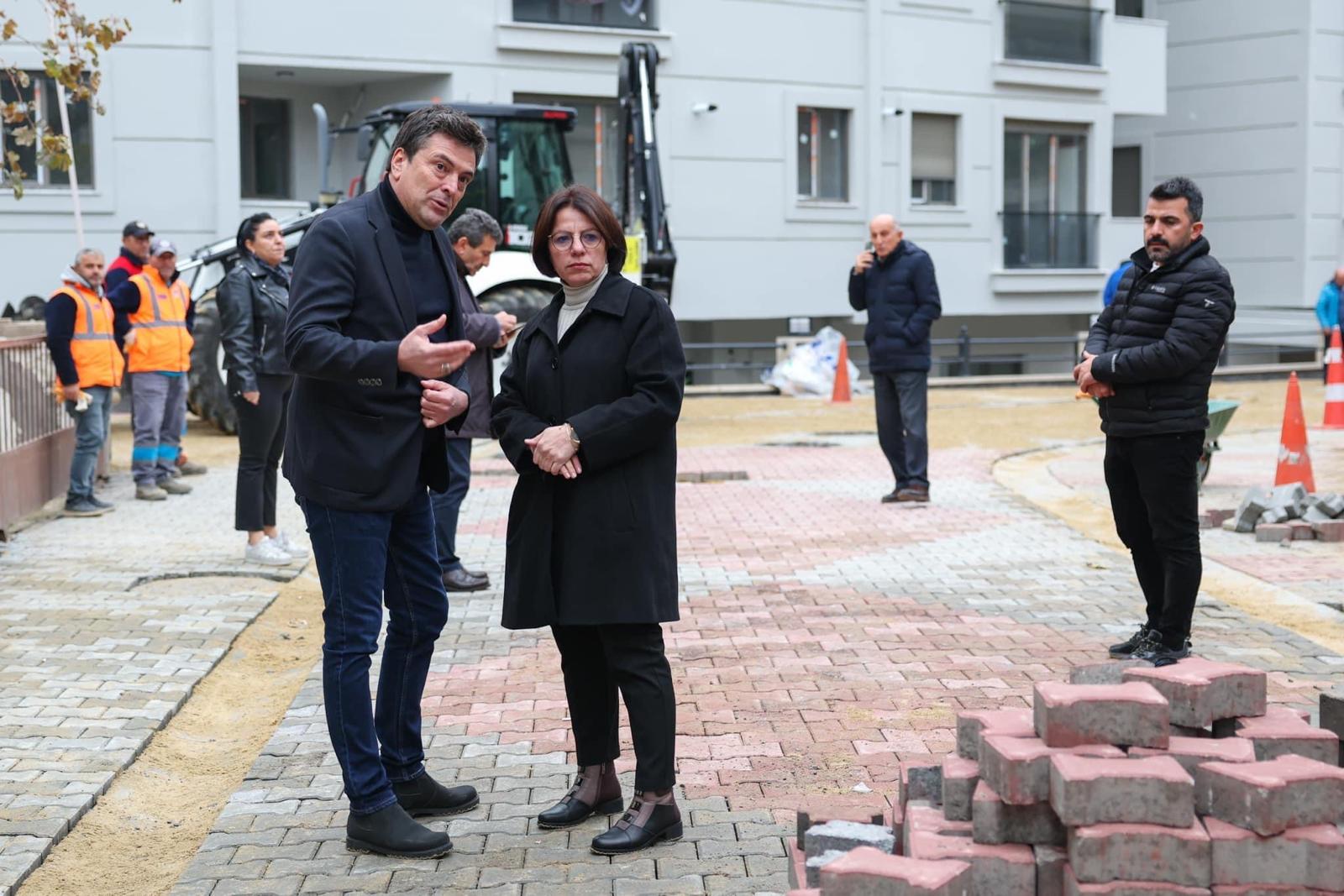 Çınar ve Altayçeşme Mahallesi’nde sürdürülen çalışmaların hızlı bir şekilde tamamlanacağını belirten Başkan Esin Köymen; “Çınar Mahallesi ve Altayçeşme Mahallesi’nde devam eden asfalt ve kilit taşı döşeme çalışmalarını yerinde inceledik.