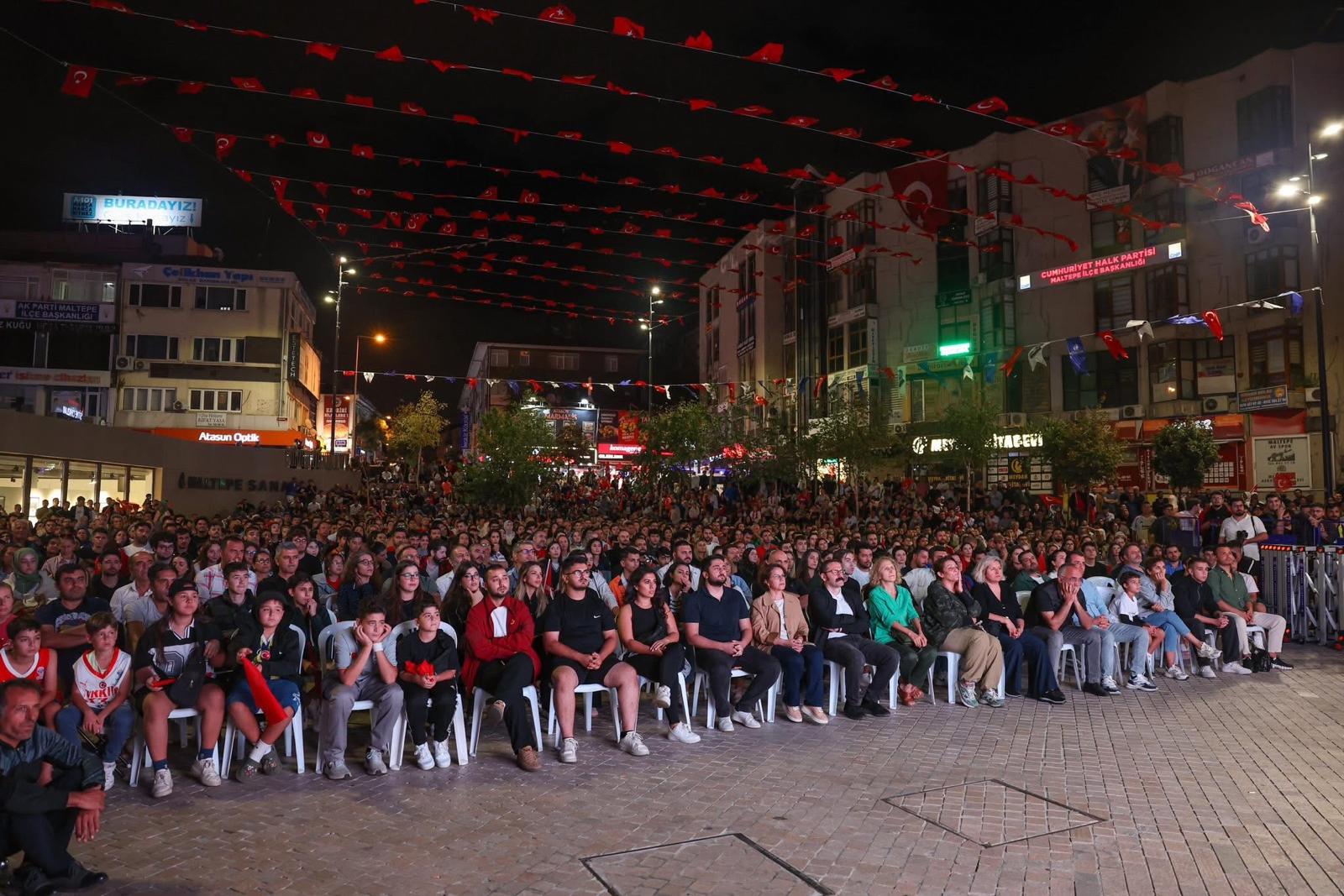 Finalin coşkusu Maltepe’de de doruğa ulaştı. Maltepe Belediyesi tarafından Cumhuriyet Meydanı’na kurulan dev ekranda maçı izleyen yüzlerce vatandaş, milli takıma büyük destek verdi.