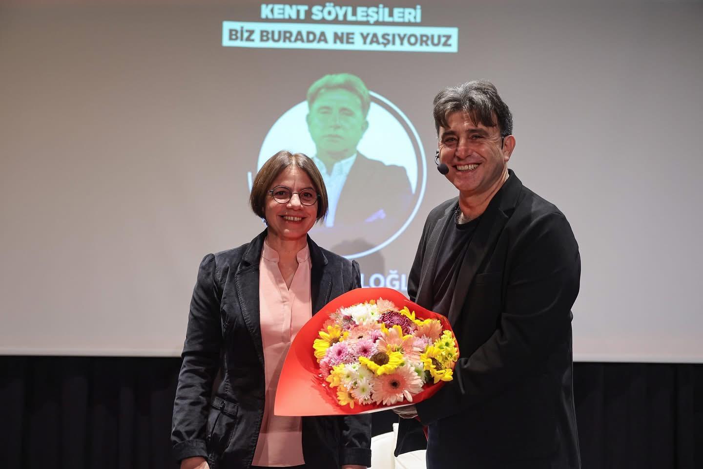 Söyleşinin kapanış konuşmasını yapan Maltepe Belediye Başkanı Mimar Esin Köymen ise katılımlarından ötürü Hacaloğlu’na teşekkür ederek, “Belki de şöyle de bitirmek gerekiyor. Hepimizin zaman zaman morali bozuldu. Biz de genelde çalışmalarımızı sürdürürken aslında yaşadığımız sıkıntılar var, önümüzdeki süreçlere dair de o bilinmezlik durumu var. Birçok durumu içselleştirdik, olağan karşılamaya başladık. Aslında tüm olan bitenler içerisinde en tehlikeli şey bu bence. Tüm bunları olağan karşılamaktan çıktığımız zaman kurtuluşun ipuçları da ortaya çıkmış olacak. O anlamda ben mutsuzluğun hepimize yasak olduğunu tekrar anlatmak isterim. Biz, yarınlarımıza dair hem umutlarımızı yükseltiyoruz hem de geleceğe dair farkındalıklarımızı artırmaya çalışıyoruz.” ifadelerini kullandı.