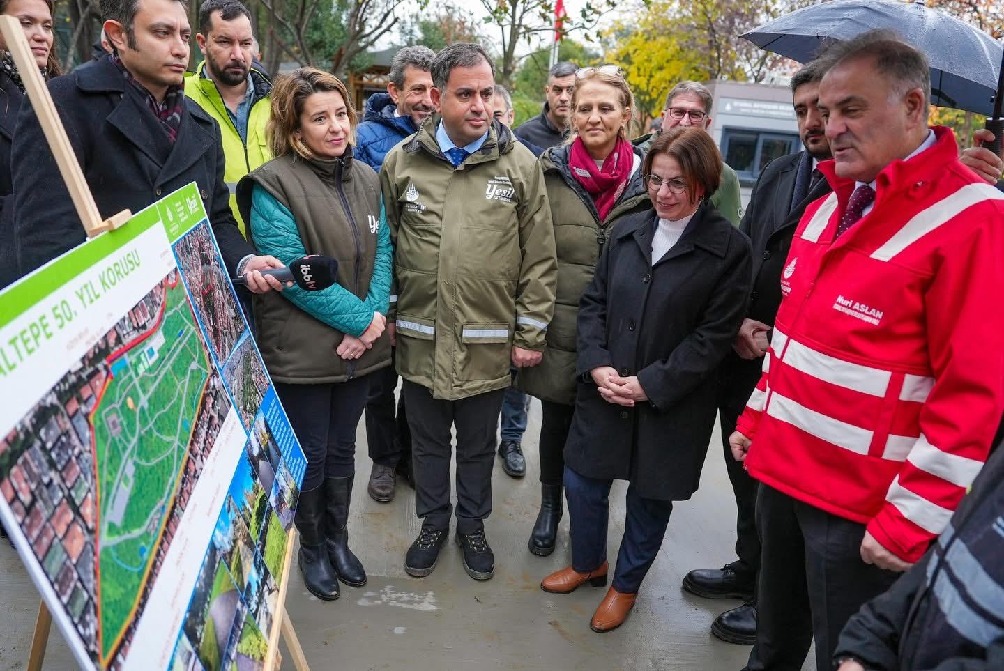 İlk olarak İdealtepe 50. Yıl Korusu’nda yürütülen çalışmaları inceleyen Nuri Aslan ve Başkan Esin Köymen, burada çalışmaları yürüten ekipten bilgi aldı.