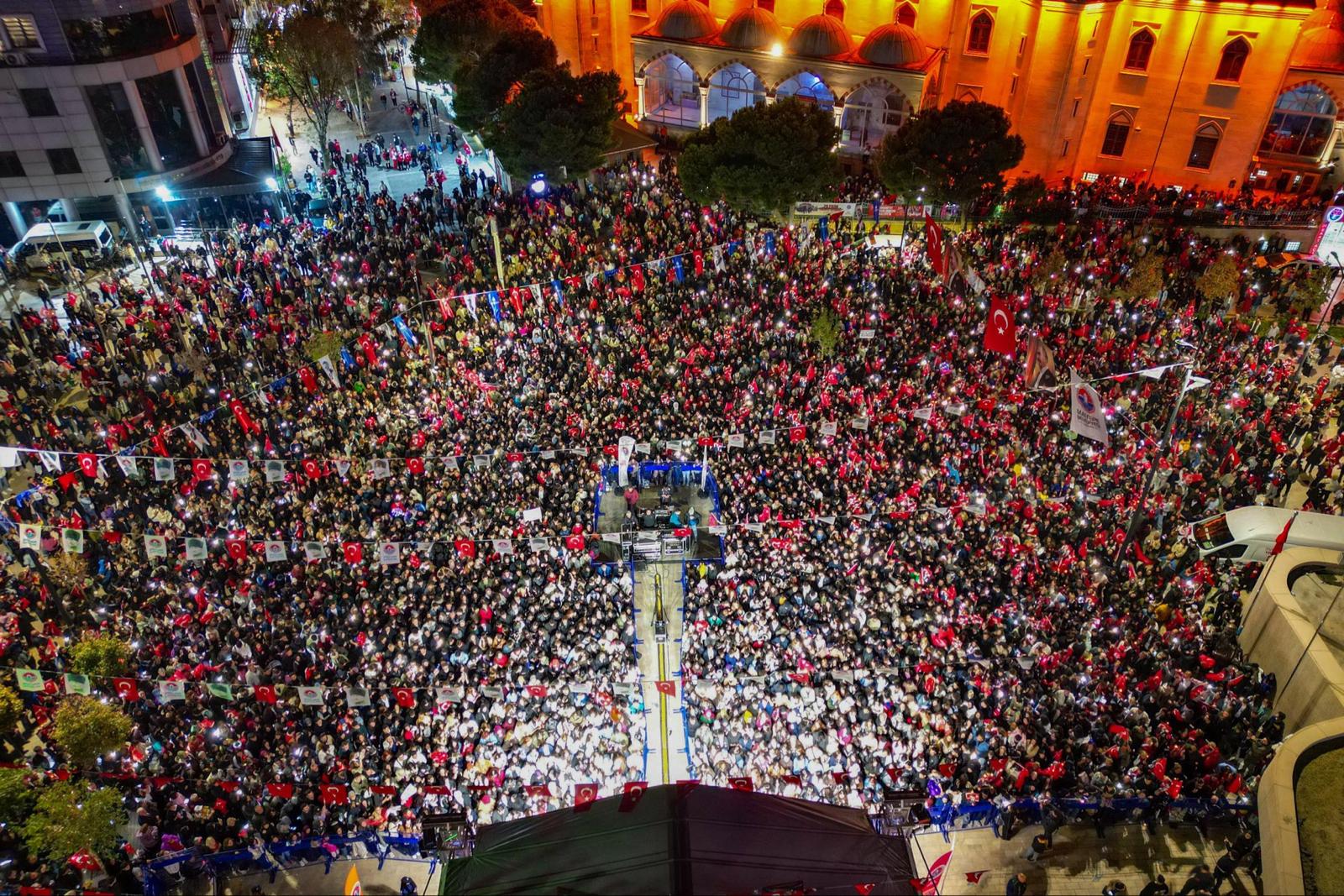 Meydanda toplanan binlerce kişi, Madrigal’in söylediği şarkılara hep bir ağızdan eşlik etti.
