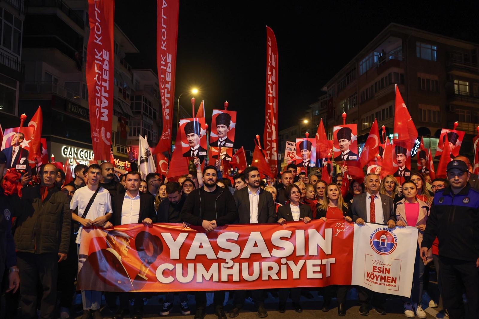 Cumhuriyet’in kuruluşunun 102. Yılı Maltepe’de coşkuyla kutlandı. Maltepe Belediyesi tarafından düzenlenen fener alayına katılan binlerce kişi saatler öncesinden belediye binası önünde toplandı. Ellerinde meşaleler ve Atatürk posterleri ile Cumhuriyet’i kutlayan Maltepelilere bando takımı da eşlik etti. Maltepe Belediye Başkanı Esin Köymen’in de katıldığı fener alayı yürüyüşü Cumhuriyet Meydanı’nda son buldu.