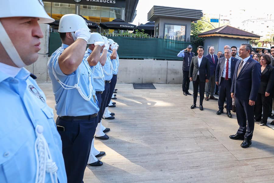 Belediye binası önünde resmi törenle karşılanan Özel’e, Başkan Esin Köymen eşlik etti...