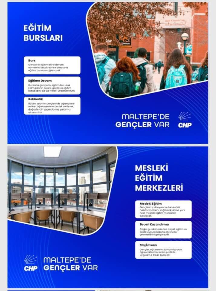 Gençlerin eğitim hayatlarına yönelik “burs”, “yurt”, “mesleki eğitim merkezleri” gibi temel ihtiyaçlarını gidermenin yanı sıra sosyalleşebilecekleri “semt gençlik evlerini” de Maltepe’ye kazandıracağız.