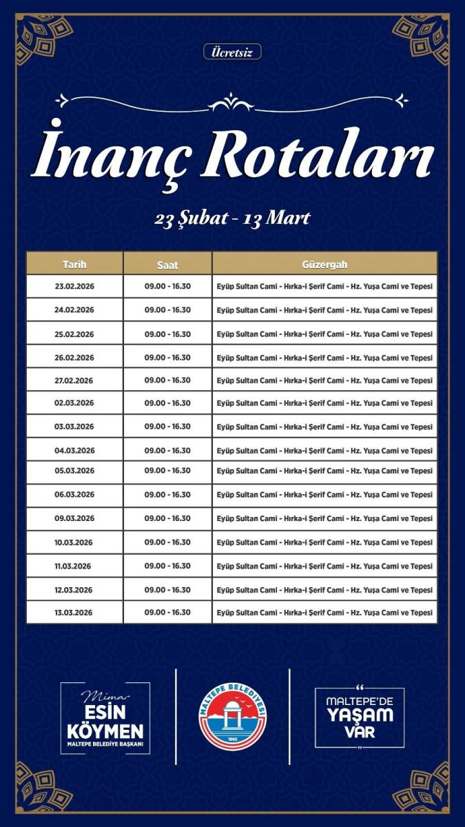 İnanç Rotaları’na katılım için Maltepe Belediyesi’nin kurumsal sosyal medya hesapları takip edilebilir.