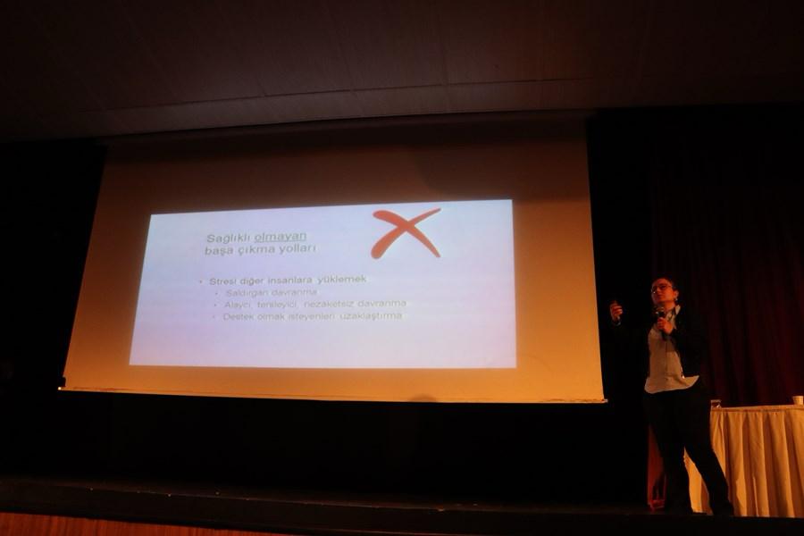 Eğitimde stres çeşitleri ve bunlarla nasıl başa çıkılacağı anlatıldı.