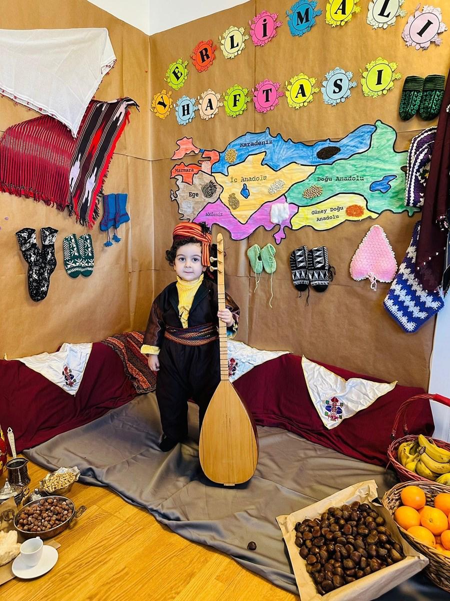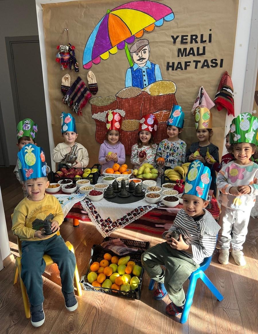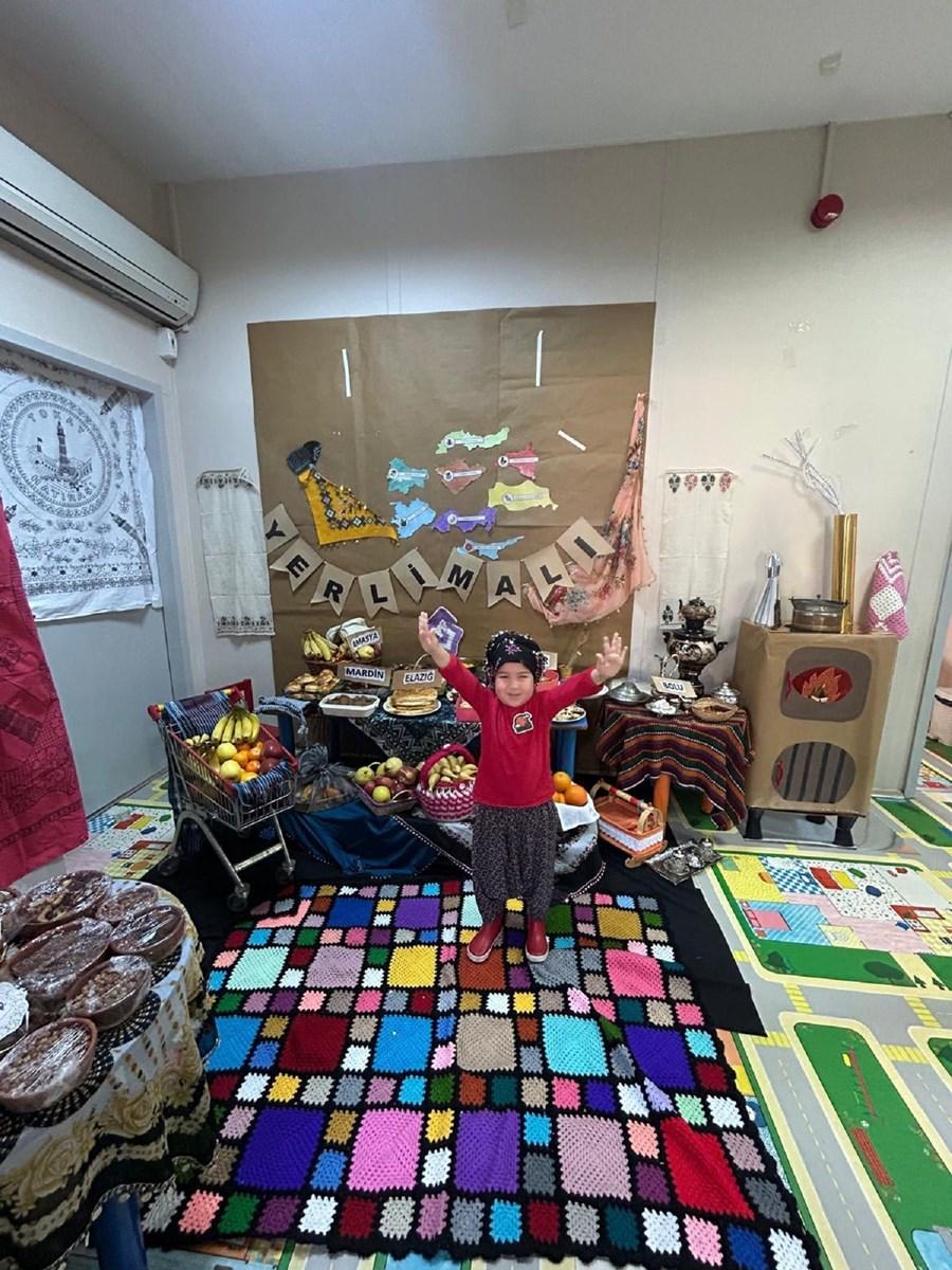 Kreş öğrencileri yöresel kıyafetler giyerek hazırladıkları gösterilerle yerli tüketimin artmasını, tutumlu olmanın, yatırım yapmanın ve yerli malı kullanmanın önemine dikkat çektiler.