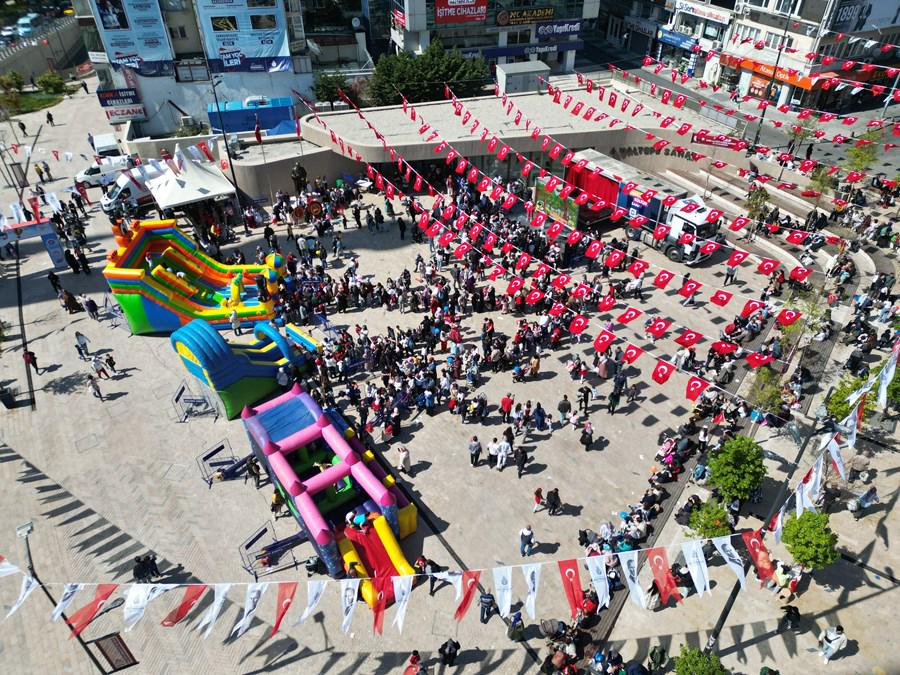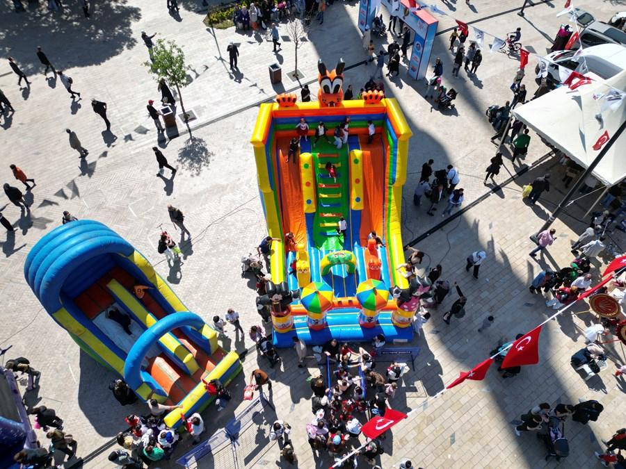 23 Nisan etkinlikleri kapsamında Cumhuriyet Meydanı’nda kurulan oyun alanlarında çocuklar doyasıya eğlendi.