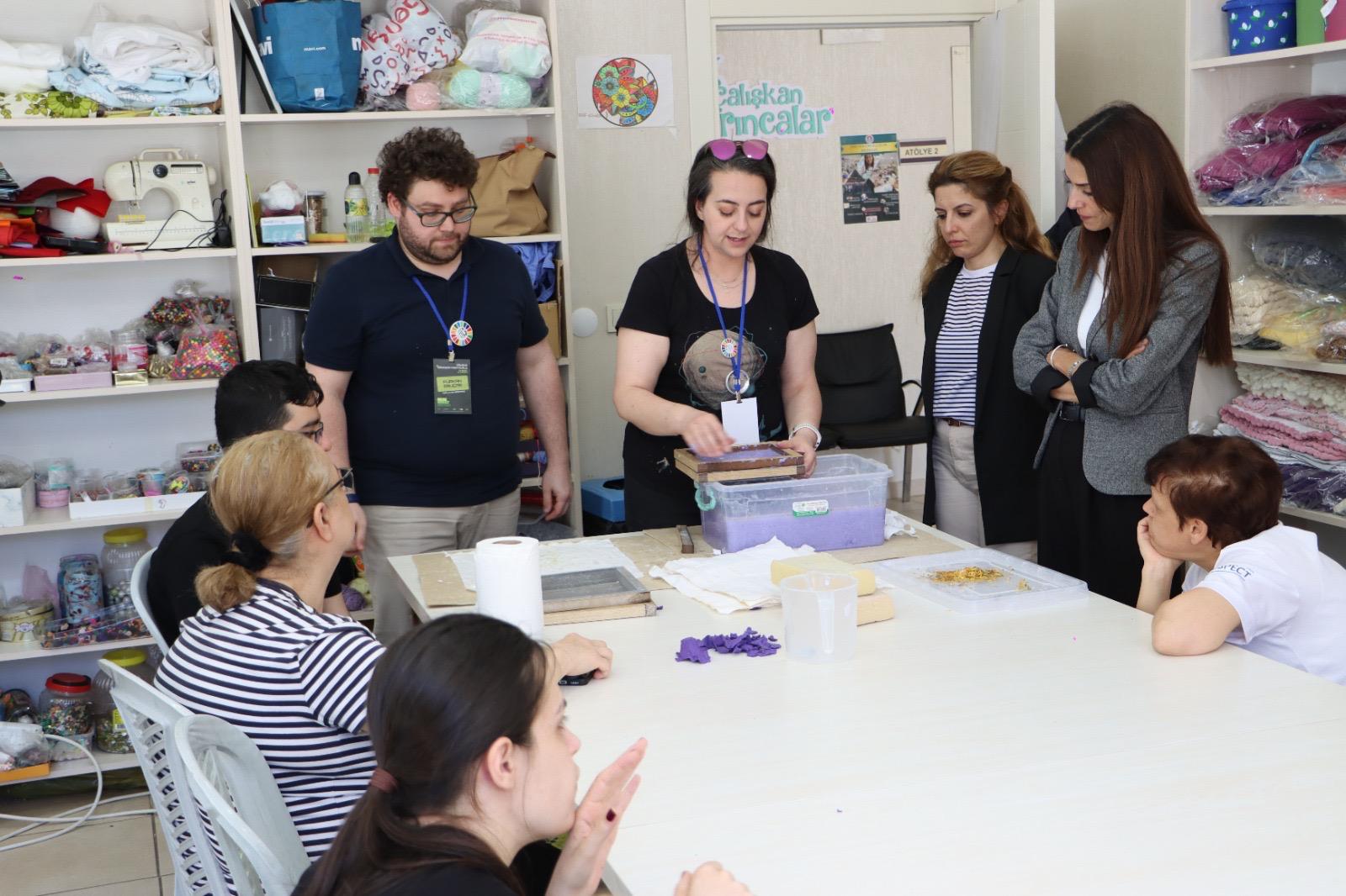 Üreten Engelliler Merkezi'nde düzenlenen bir diğer atölye çalışmasında ise engelli bireyler, atık kâğıtlardan kitap ayracı yapımını öğrendi. Bu etkinlikle katılımcıların çevre ve doğaya duyarlılığı artırıldı.