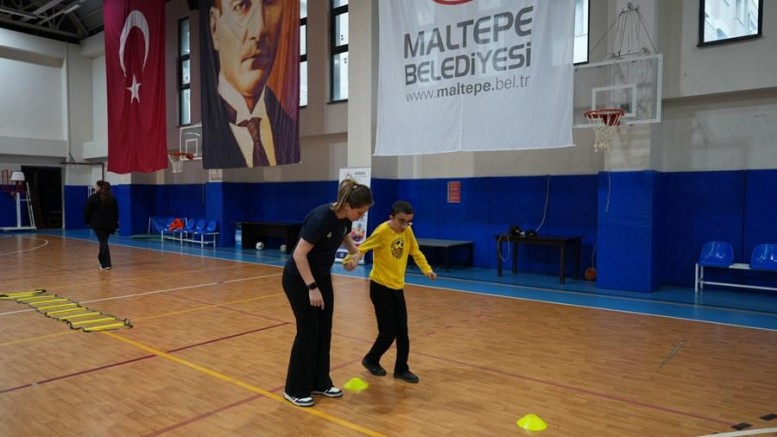 “Maltepe’de Engel Yok Spor Var” sloganıyla düzenlenen eğitimde engelli bireyler hareket eğitimi almalarının yanı sıra basketbol ve futbol da oynadı...