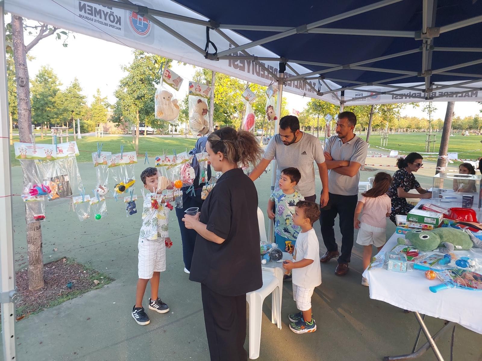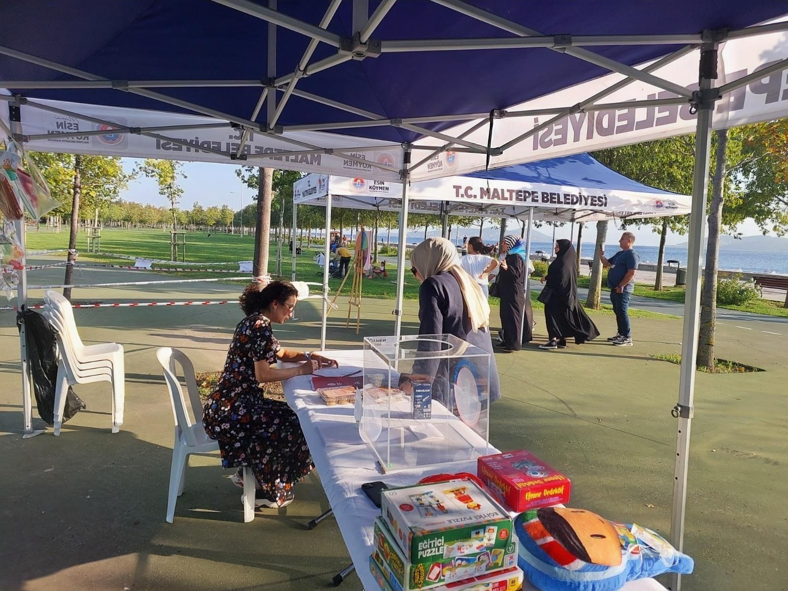 Dart tahtasında hedeflerini tutturan vatandaşlara Maltepe Belediyesi oyuncak ve kitap kumbaraları aracılığıyla toplanıp yeniden dönüştürülen oyuncaklardan hediye edildi...