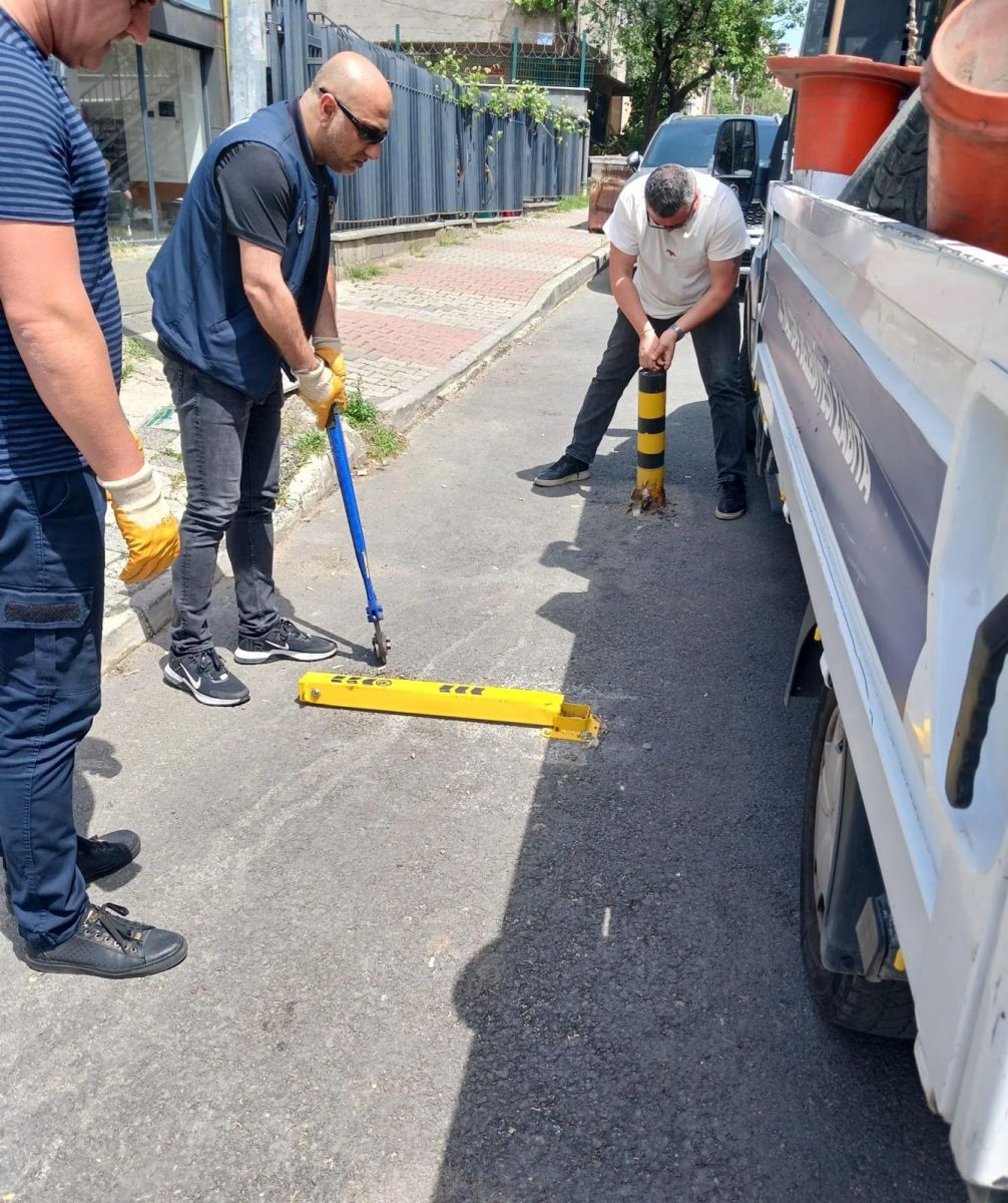 Denetleme sırasında yollara konulan lastik, duba vb. malzemeler araç eşliğinde alındı. Yollara sabitlenmiş demir dubalar ise aletlerle yerinden söküldü.