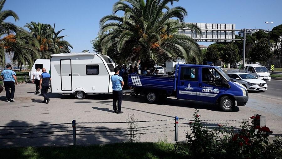 İBB, bir süre önce sahil şeridindeki kamuya açık alanlarda uzun süreli park halinde olan karavanların çekilmesi için ihtarda bulundu...