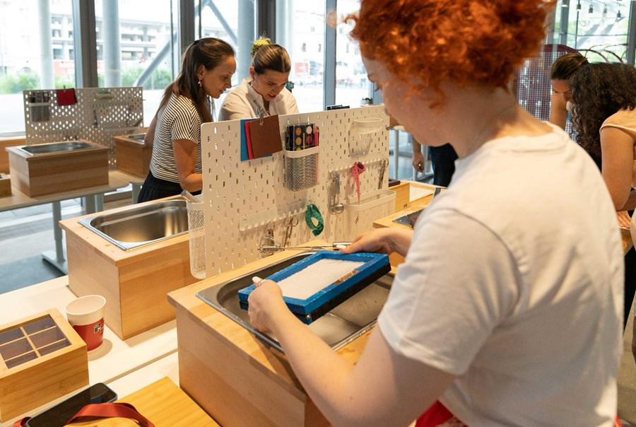 Çocuklar programa müzenin koleksiyonundaki yapıtları inceleyerek başladı… Katılımcılar atölyede ise atık kâğıtları yırtıp kâğıt teknesinde ıslatıp kurutarak ürettikleri el yapımı kâğıtlara desenler çizerek programı tamamladı…