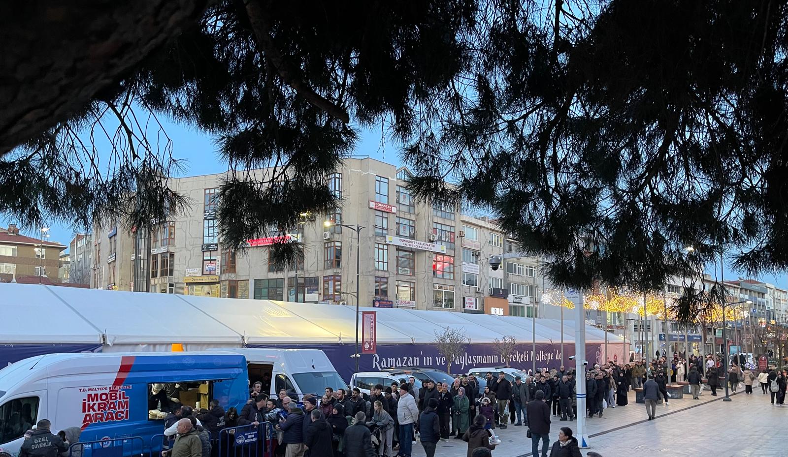 Maltepe Belediye Başkan Yardımcısı Nimet Karabulut da iftar programına katılarak vatandaşlarla bir araya geldi, Ramazan ayının hayırlı olması temennisinde bulundu. Maltepe Belediyesi Sosyal Hizmetler Müdürlüğü koordinasyonunda kurulan iftar çadırında Ramazan ayı boyunca her gün yaklaşık bin kişiye sıcak yemek ikram edilecek.