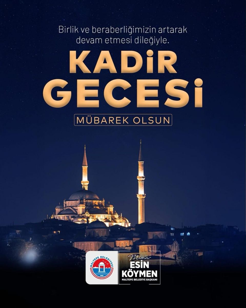 Maltepe Belediye Başkanı Mimar Esin Köymen, ‘Kadir Gecesi’ dolayısıyla yayımladığı mesajında, “Kadir Gecesi’nin, ülkemize ve tüm insanlığa barış, adalet ve huzur getirmesini diliyorum.” ifadelerine yer verdi.