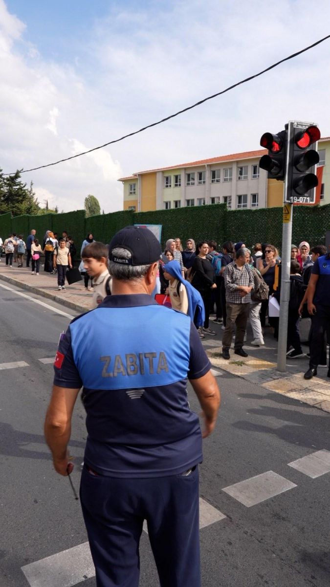 Ayrıca zabıtalar, yer yer öğrencilere eşlik ederek, gerektiğinde trafiği durdurarak, veliler ve öğrencilerle birlikte sürücülere trafik kurallarını ve işaretlerini anlatarak görevlerini sürdürüyorlar...